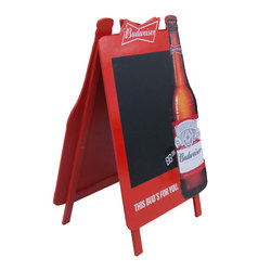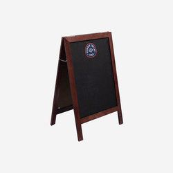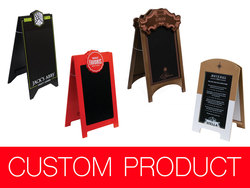 Our well-built, solid wood sidewalk sign is a budget friendly solution for posting specials, events, and constantly changing promotions. Catch anyone's eye at the door with fully customized A-Frame signs. Full customization means limitless options. Choose your size and shape or a custom shape, add a header or an insert for graphics. We offer full color imprinting, logo imprinting and laser engraving. Imprint directly on the chalkboard or optimize it for wall or tabletop. Choose your wood species or add a stain. Already have ideas flowing? Call today for details or call for a quote!