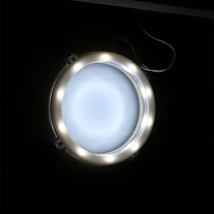 - Battery-operated LED ring installed for instant nighttime fun